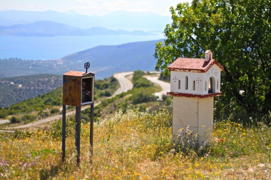 When you finally get to the top of the mule trails everything opens up below; the town of Kardamili, the church at the edge of the cliff, the layers of blue mountains behind. Land, sea and sky wrap around you. The scent of sage is the memory that will linger. That and the silent Greek wilderness. . . .